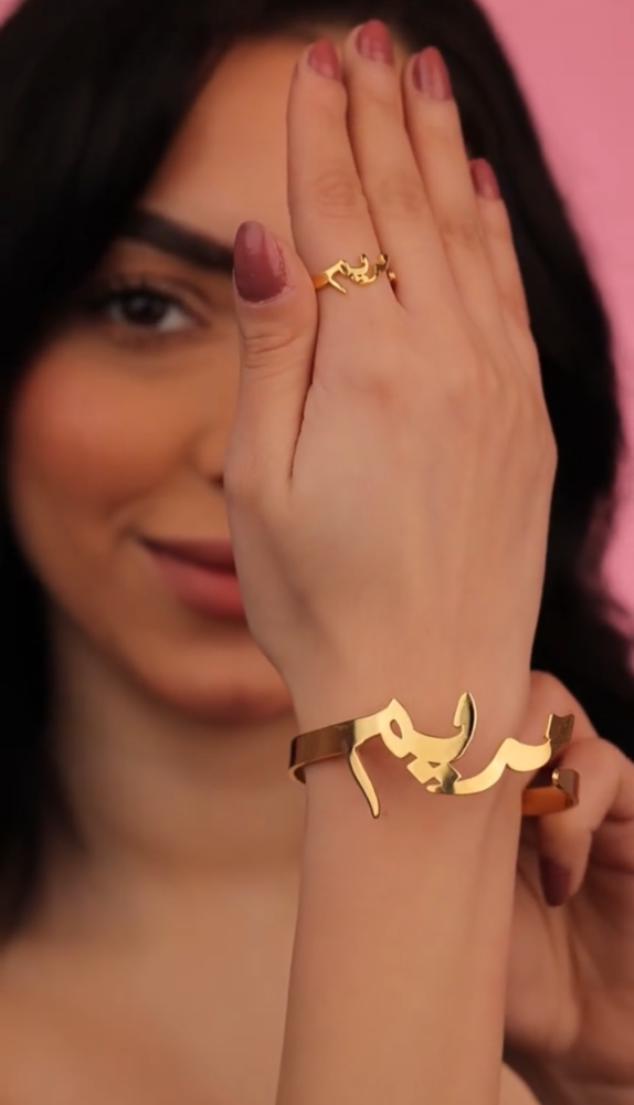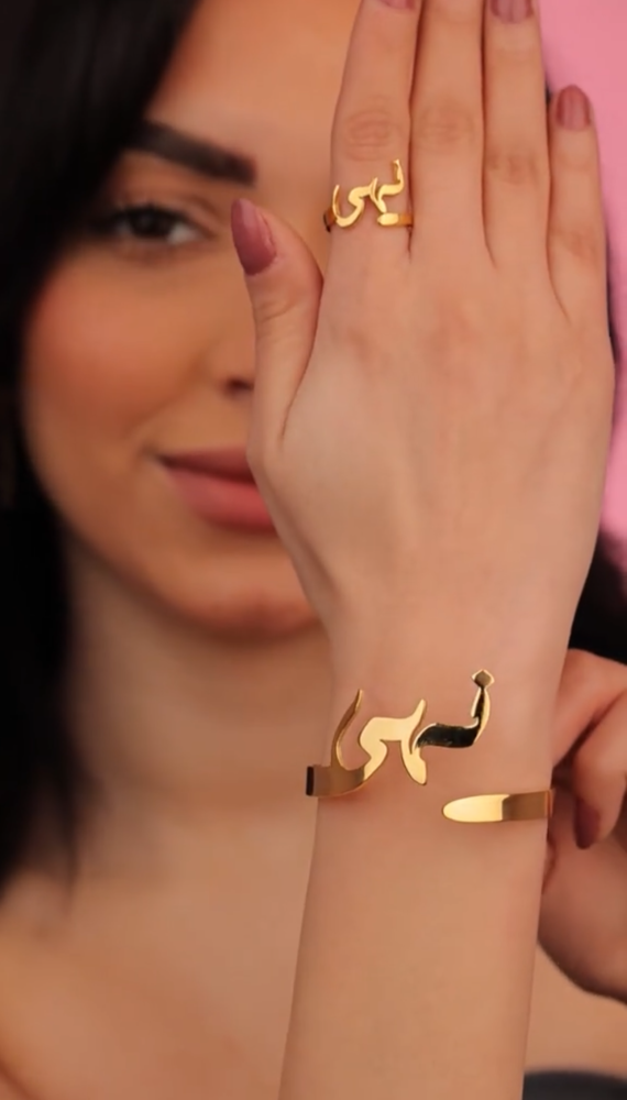 بكج مميزه جدا بتصميم الاسم ، مطلي بطلاء ذهب مع ضمان سنتين على اللون وطبعا مع علبة مخصصة وكيس.